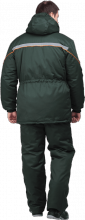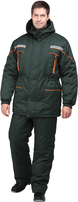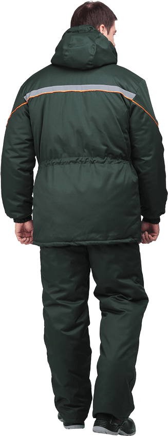 Рекомендуется для защиты от холода при работах, связанных с сильным загрязнением одежды. Удлинённая куртка с центральной застёжкой на молнию и ветрозащитным клапаном на контактной ленте. Утеплённый отстёгивающийся капюшон. На полочках – прорезные карманы на молнии и карманы на шве. Отделка деталей – контрастной тканью и светоотражающими полосами создают дополнительную защиту в условиях плохой видимости.