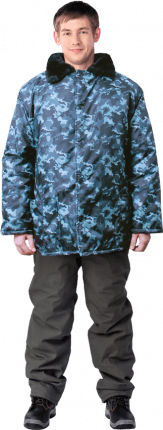 Традиционная модель рабочей зимней куртки для защиты от пониженных температур. Куртка с центральной бортовой застёжкой на петли и пуговицы, накладными карманами и втачным воротником из искусственного меха.