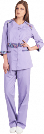 Комплект состоится из блузы (туники), брюк и шапочки.