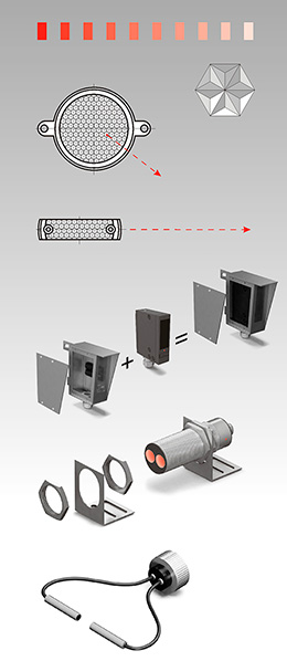Для ретрорефлекторных оптических датчиков предлагаем различные варианты световозвращателей (катафотов) в круглом и прямоугольном исполнении.