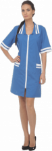 Укороченный халат на застёжке – молнии, с отложным воротником, накладными карманами, коротким рукавом. Отделка – белой тканью.