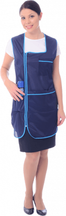 Халат с застежкой на тесьму молнию, с нагрудным накладным карманом и вместительными нижними карманами. Обхват талии регулируеться завязками.