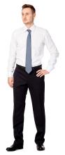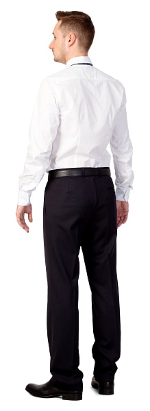 Сорочка мужская приталенная с вытачками на спинке, с застежкой на пуговицы, с фигурным низом. Воротник отложной со стойкой.