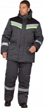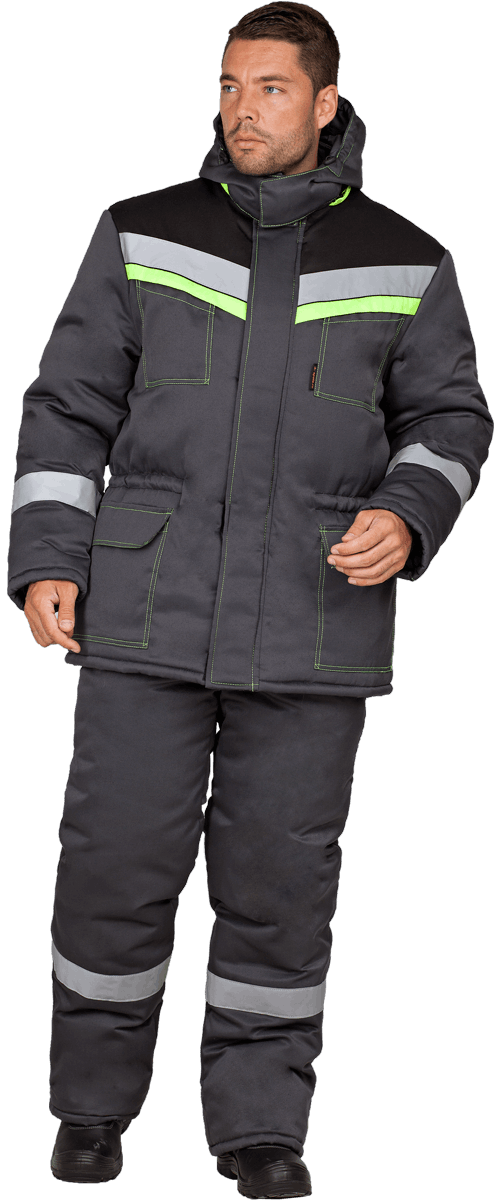 В костюме используется ветрозащитная прокладка и световозвращающие полосы (СОП) 50 мм