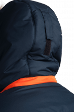 • капюшон съёмный с регулировкой по лицевому вырезу и отстёгивающейся меховой опушкой
