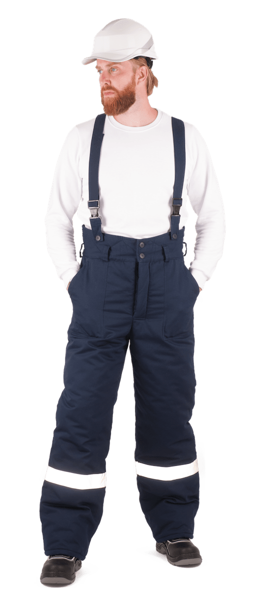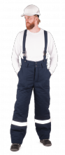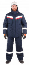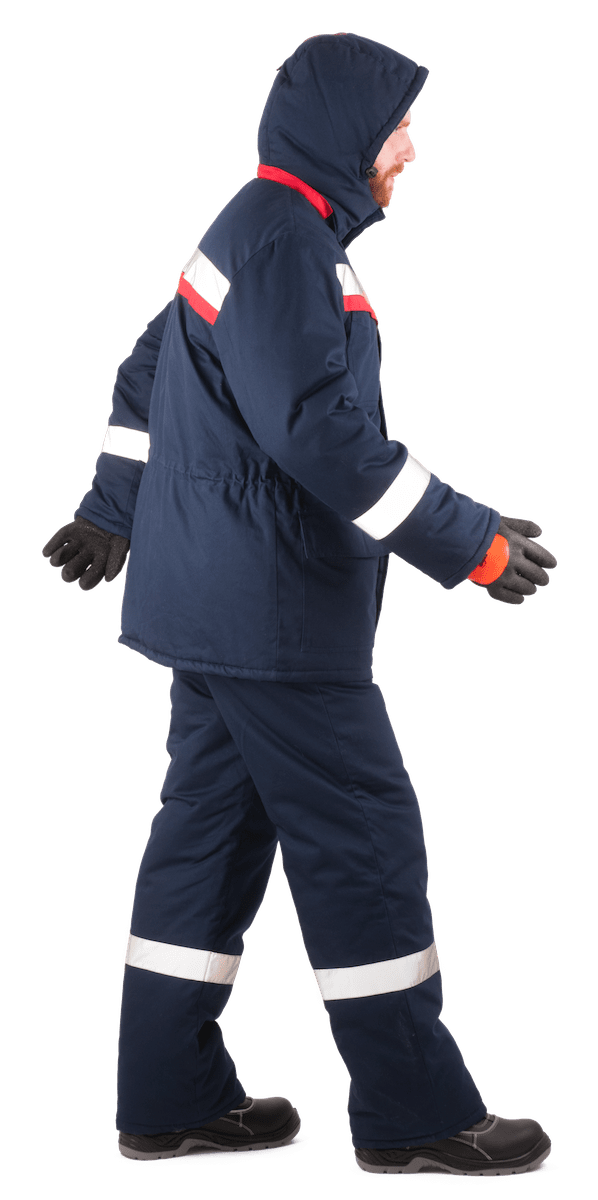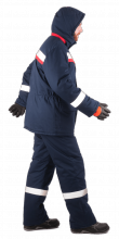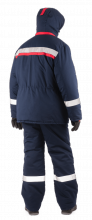 В костюме используется ветрозащитная прокладка и световозвращающие полосы (СВП) 50 мм