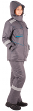 В костюме используются световозвращающая полоса (СОП), кант бирюзового цвета