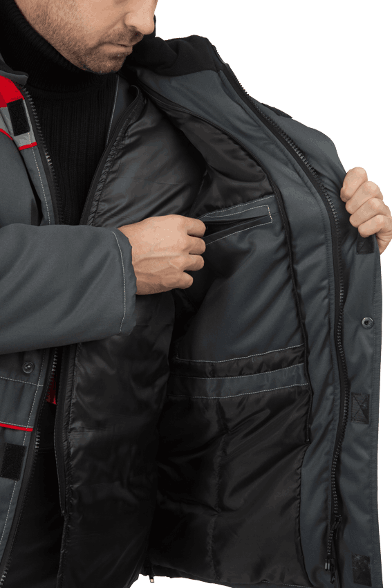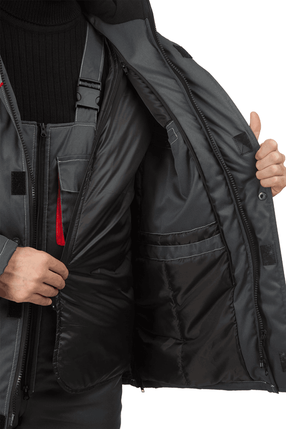 Костюм состоит из куртки со съёмной утепляющей подстёжкой и полукомбинезона. В костюме используется световозвращающая полоса (СВП) 50 мм.