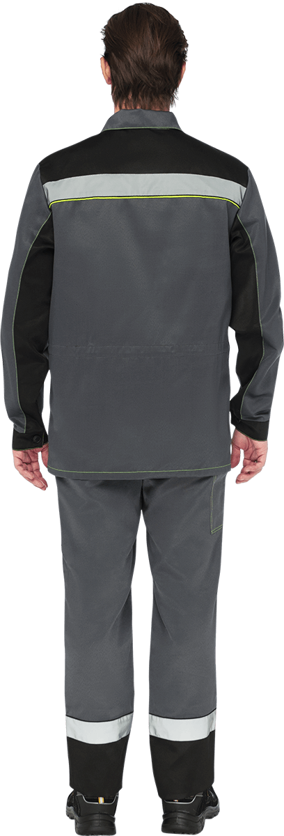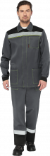 Костюм состоит из куртки и брюк. Костюм отстрочен нитью контрастного цвета. В костюме используется световозвращающая лента шириной 50 мм