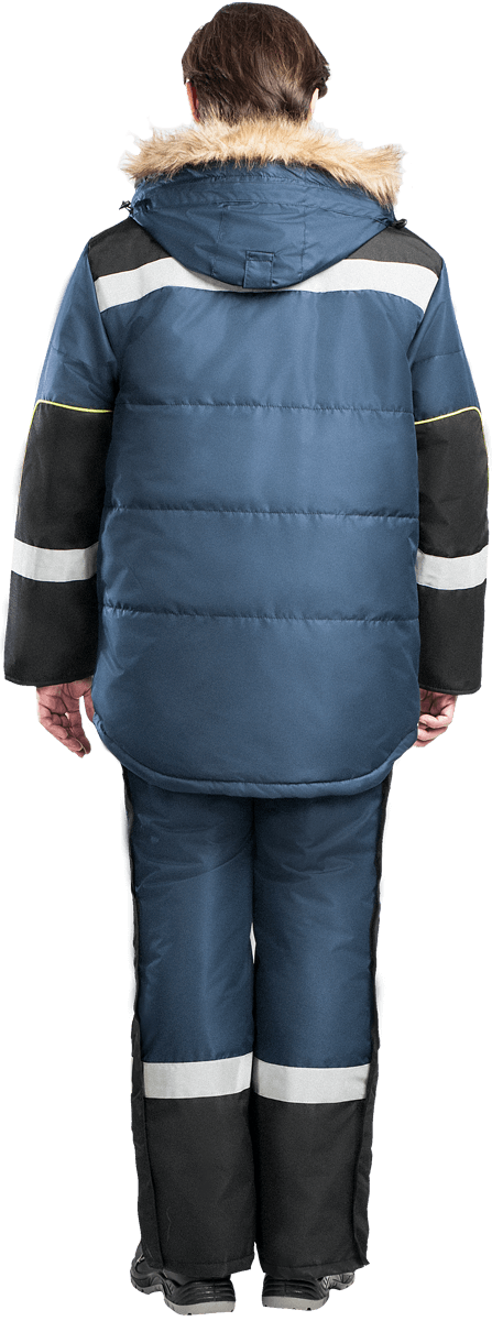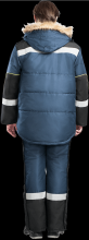Костюм нового поколения, с использованием новых материалов и решений.Состоит из куртки и полукомбинезона. Куртка с застёжкой на двухзамковую молнию, многофункциональными карманами, дополнительной ветрозащитной планкой, воротником - «стойка». Рукав — с внутренней трикотажной манжетой. Капюшон - съёмный, с отстёгивающейся отделкой из искусственного меха. Обхват талии регулируется кулиской с эластичным шнуром. Капюшон, воротник и карманы на флисовой подкладке. Полукомбинезон с застёжкой на молнию, отстёгивающейся задней частью, прорезными карманами, на бретелях с В костюме используется световозвращающая лента ГОСТ и кант, высококачественная фурнитура. Рекомендуется к эксплуатации в IV и «особом» климатическом поясе.