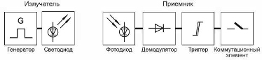 Оптический датчик имеет собственный излучатель и приемник оптического излучения. В изделиях ВБО марки "Сенсор" используют кодированное излучение инфракрасного диапазона.