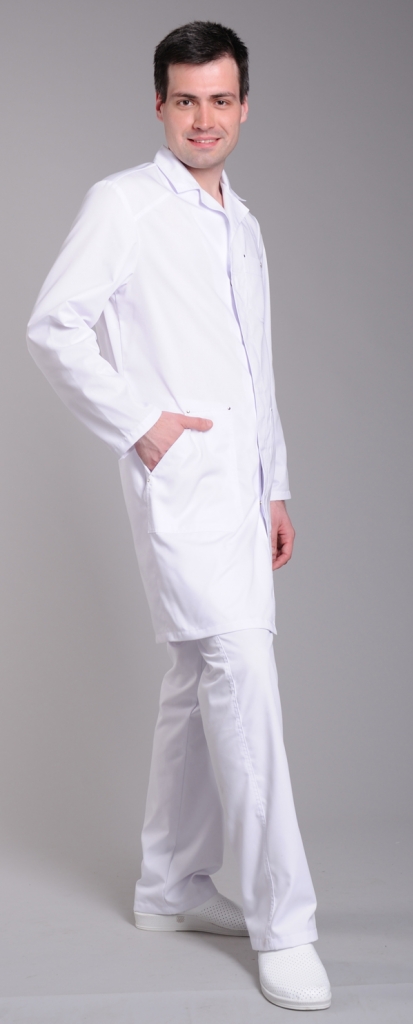 Строгий мужской халат для тех, кто ценит классический стиль. Эргономичный дизайн обеспечит Вам комфорт и уверенность в себе, а высококачественная английская ткань «Тередо» - долговечность Вашей рабочей одежды.